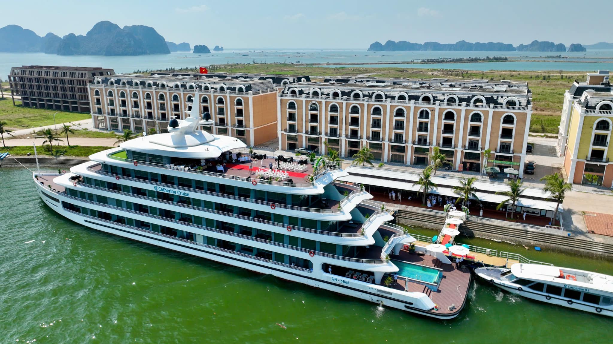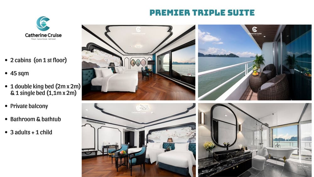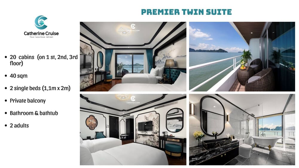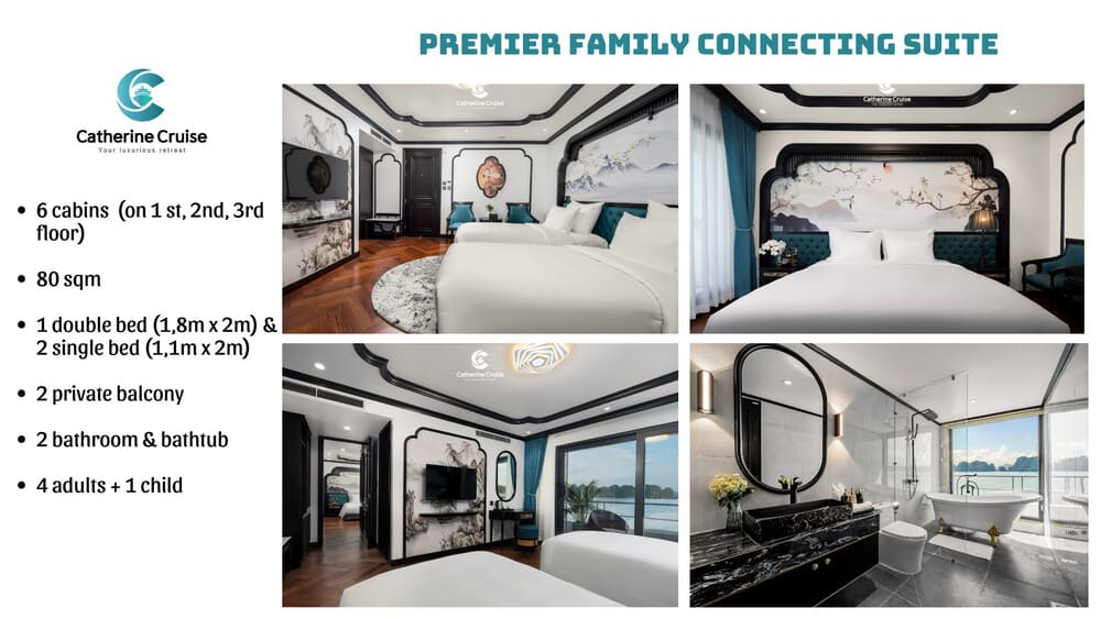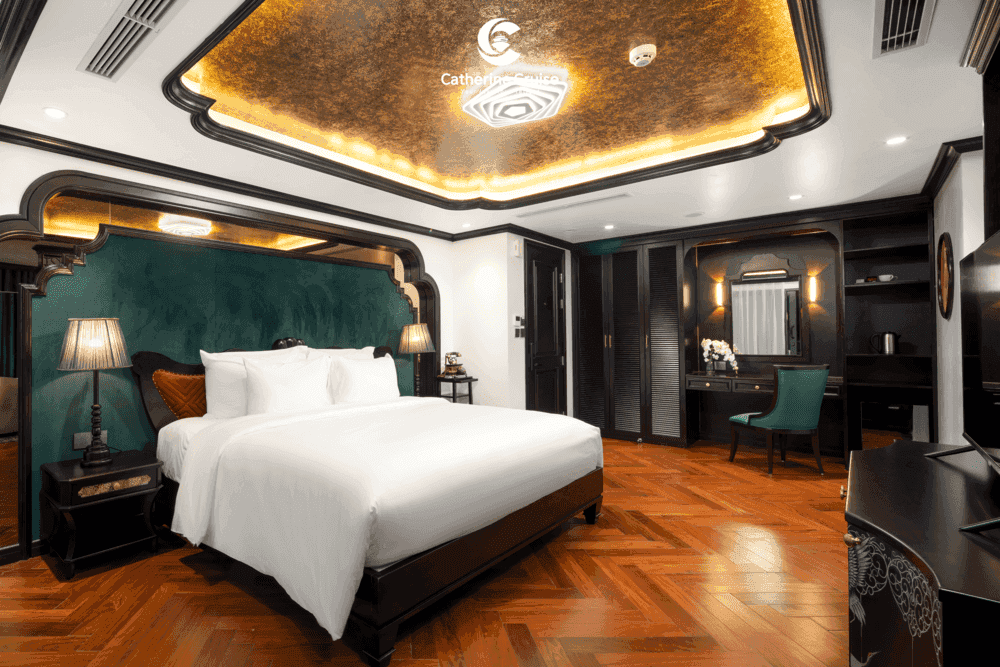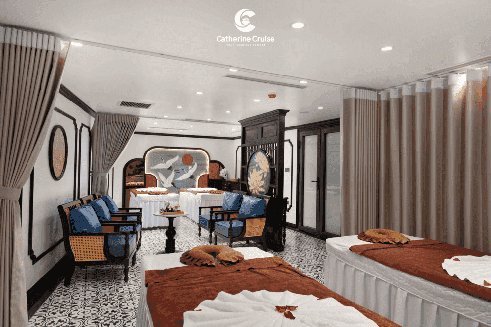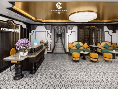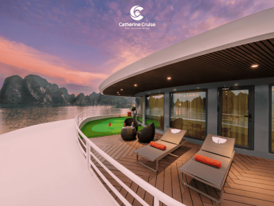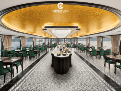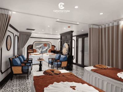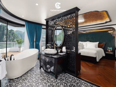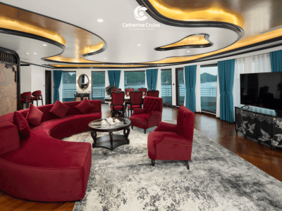 Du thuyền Catherine Cruise Hạ Long là một siêu du thuyền 6 sao chuẩn sịn đầu tiên tại Hạ Long với 39 cabins có ban công riêng. Du thuyền Catherine sở hữu một không gian sang trọng, tiện nghi với phong cách Đông Dương ấn tượng. Với chiều dài lên tới 90m và rộng 15m, Catherine có sức chứa khách ngủ đêm lên tới 117 hành khách.