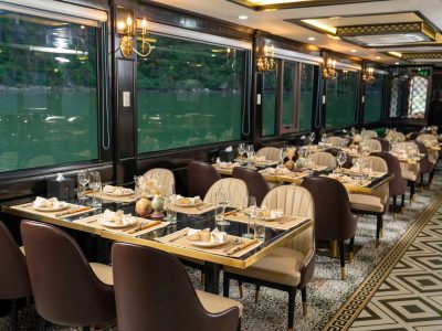 - Du thuyền 5 sao mới với cơ sở vật chất hiện đại, điều hòa suốt tuyến, internet (Wifi), sức chứa 99 khách