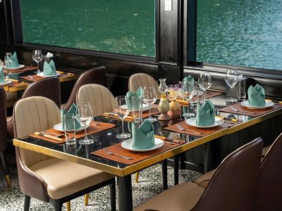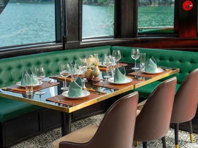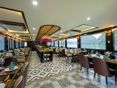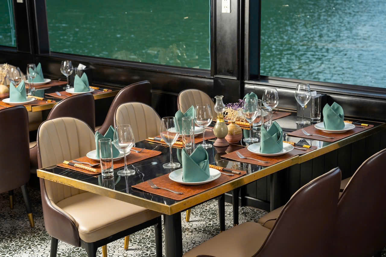 - Cơ sở vật chất hiện đại, boong tàu sang trọng, điều hòa, Tivi, Internet (Wifi) trong khu vực nhà hàng.