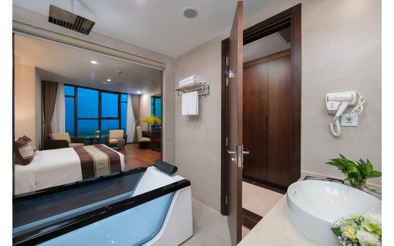 - Hạng phòng Marina Suite là loại Phòng cao cấp nhất của khách sạn có phòng khách và phòng nghỉ riêng biệt đem đến sự lãng mạn, riêng tư, được đặt ở tầng cao nhất của tòa nhà