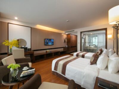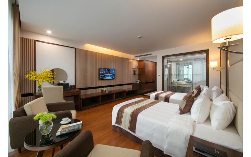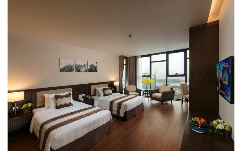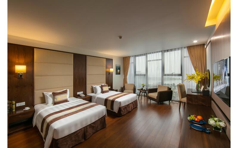 - Hạng Phòng Deluxe Twin với các phòng được thiết kế bày trí sang trọng và ấn tượng với các trang thiết bị cao cấp. Phòng có 2 giường đơn