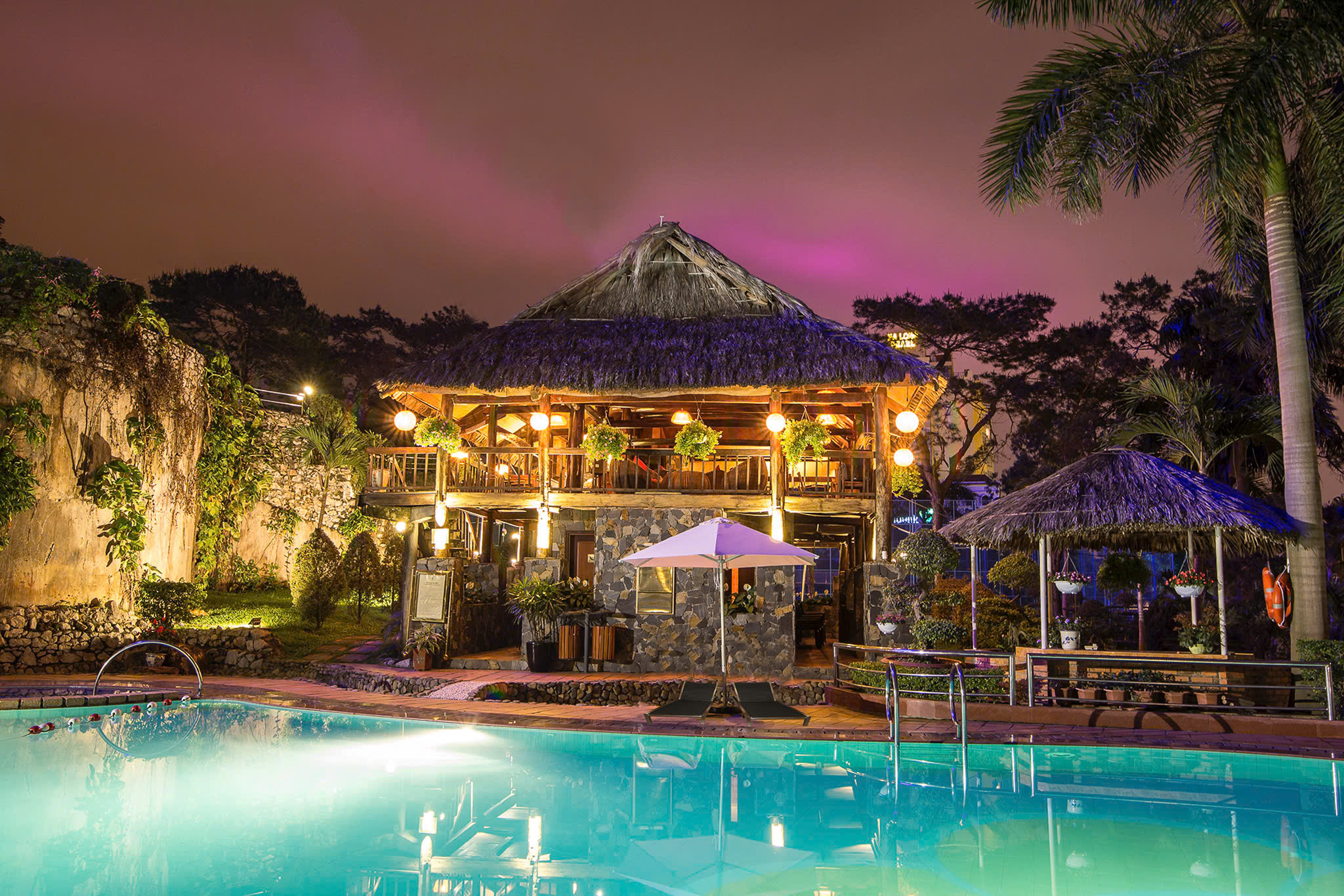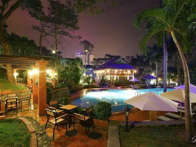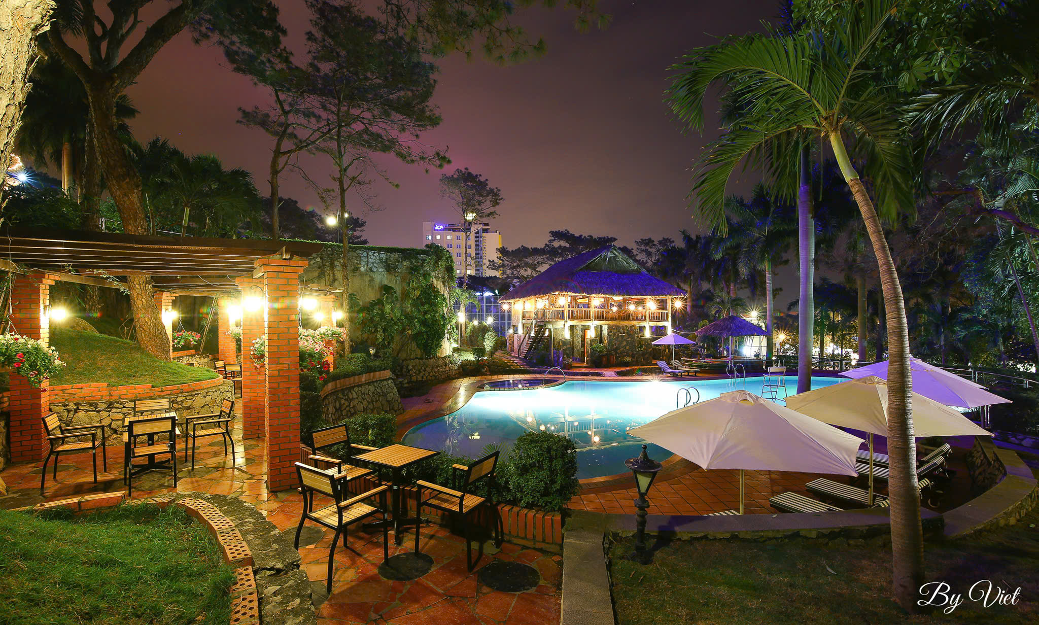 + Vị trí: Ngoài trời, giữa sân vườn của khách sạn
