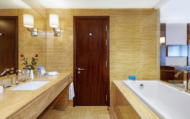 – Junior Suite: Diện tích khoảng 60 m2. Phòng có 01 giường đôi, không thể kê thêm giường phụ. Phòng tắm có buồng tắm đứng và bồn tắm nằm. Phòng có ban công hướng biển. Đặc quyền sử dụng Club Lounge.